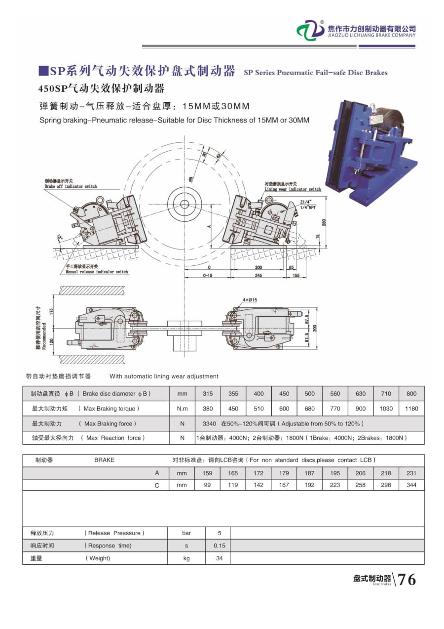 SP系列氣動(dòng)失效保護(hù)盤(pán)式制動(dòng)器